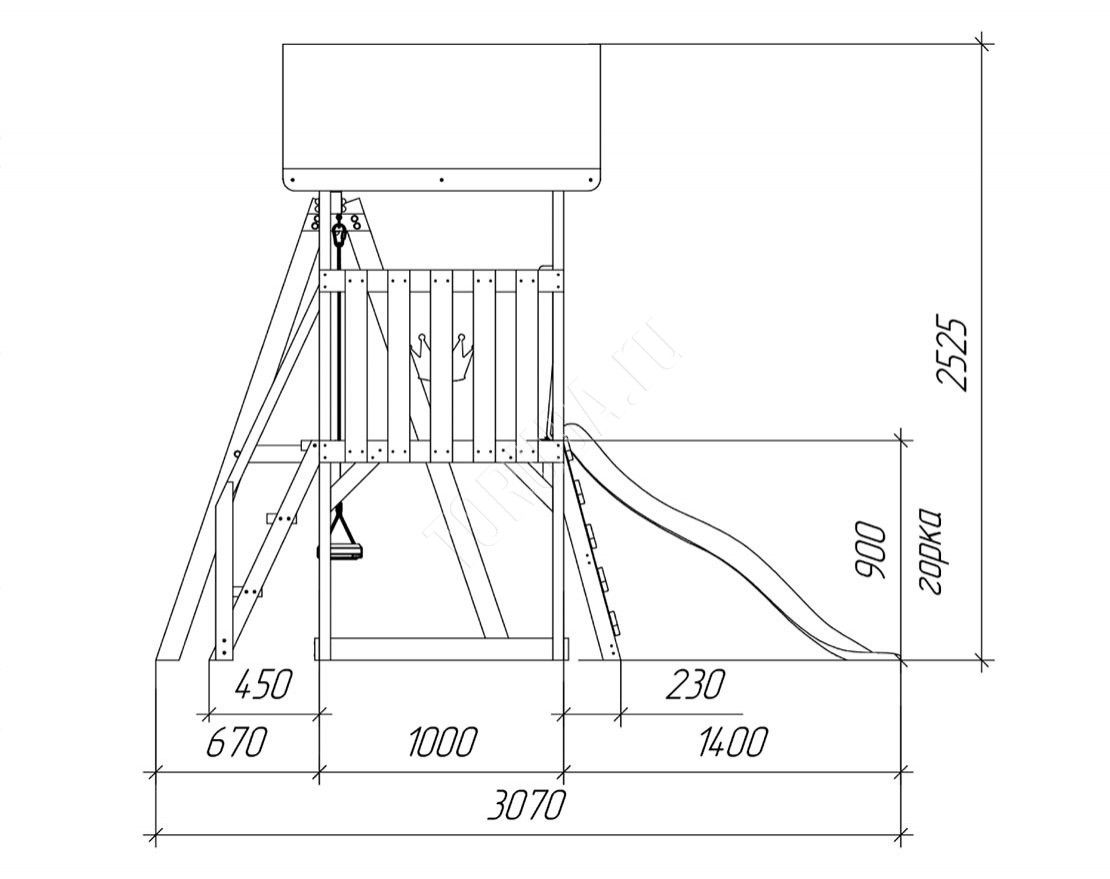 Площадка Борге 15 обладает довольно широким функционалом (который по желанию можно легко расширить). Детская площадка предназначена для дачи, коттеджа.