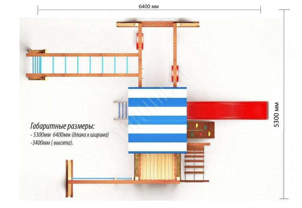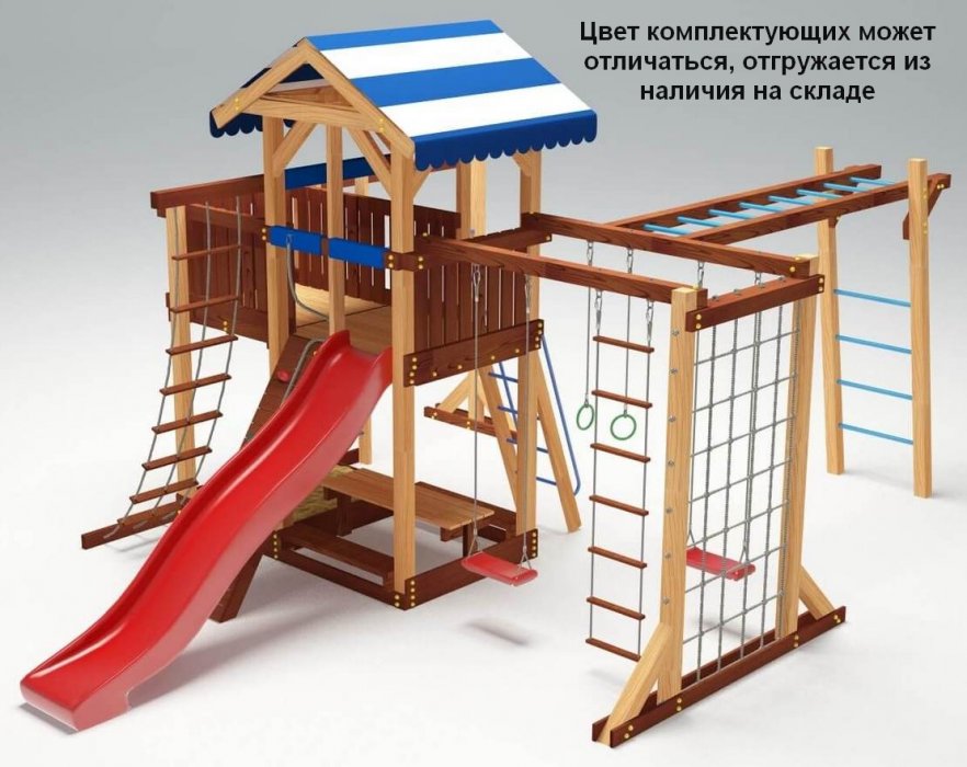 Площадка Парус 7 обладает довольно широким функционалом (который по желанию можно легко расширить). Детская площадка предназначена для дачи, коттеджа.