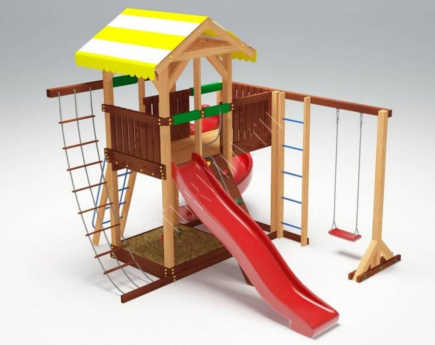 Площадка Парус 8 обладает довольно широким функционалом (который по желанию можно легко расширить). Детская площадка предназначена для дачи, коттеджа.