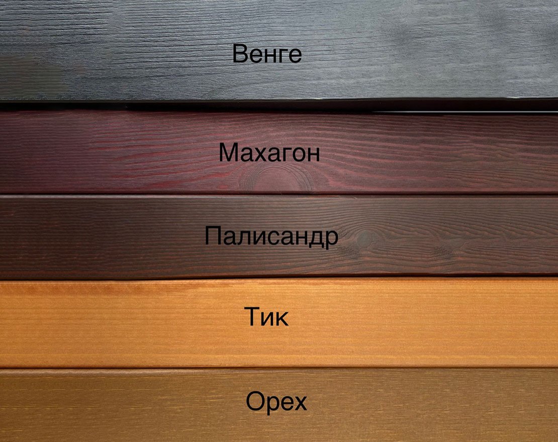 Покрытие - атмосферостойкая лессирующая акриловая пропитка с лаком.