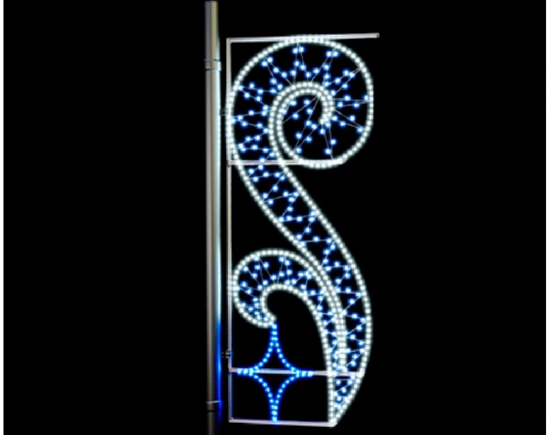 Фигура изготовлена из металлической профильной трубы, проволоки, декорирована световым шнуром и светодиодами повышенного свечения с защитой IP67.