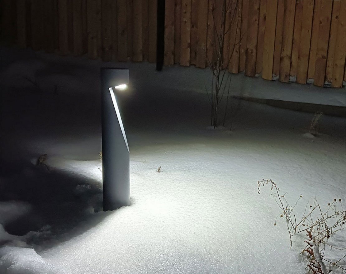 Производится путем бетонирования закладной детали с последующим креплением к ней стойки фонаря болтовым соединением.